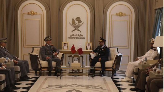 وذكر بلاغ للقيادة العامة للقوات المسلحة الملكية أن الفريق أول محمد بريظ، المفتش العام للقوات المسلحة الملكية المغربية، عقد بهذه المناسبة، الاحد الماضي ، اجتماعا مع نظيره الفريق الركن طيار جاسم بن محمد بن أحمد بن محمد المناعي، رئيس أركان القوات المسلحة القطرية، تلته مقابلة مع سعادة الشيخ سعود بن عبد الرحمن بن حسن بن علي آل ثاني، نائب رئيس مجلس الوزراء ووزير الدولة لشؤون الدفاع، حيث تم التباحث حول سبل تعزيز أوجه التعاون العسكري الثنائي في إطار التوجيهات السامية لقائدي البلدين -أيدهما الله. –