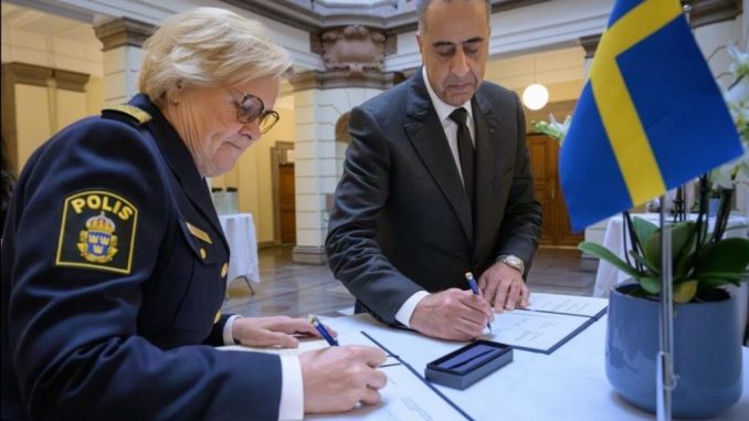وتتويجا لهذه المباحثات، وترسيخا لرغبة الطرفين في بالارتقاء بالتعاون الأمني الثنائي بينهما، بما يتطلع لشراكة مستدامة في المستقبل، فقد وقع الطرفان مذكرة تفاهم في مجال التعاون الأمني بين قطب المديرية العامة للأمن الوطني والمديرية العامة المراقبة التراب الوطني من جهة، والشرطة الوطنية السويدية من جهة ثانية.