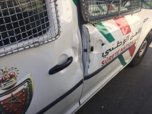 وذكر بلاغ للمدير العامة للأمن الوطني، أن فرقة الشرطة القضائية للسمارة قد أوقفت مبحوثا عنه بموجب ثمان مذكرات بحث وطنية من أجل قضايا المخدرات والعصيان والتخريب العمدي، حيث عمد على الاصطدام بواسطة سيارة للدفع الرباعي مع مركبة للشرطة، ما أفضى لإصابة عنصري شرطة بجروح، ثم تعريض عنصر من الفيلق الخفيف للأمن للضرب والجرح بواسطة قضيب حديدي .