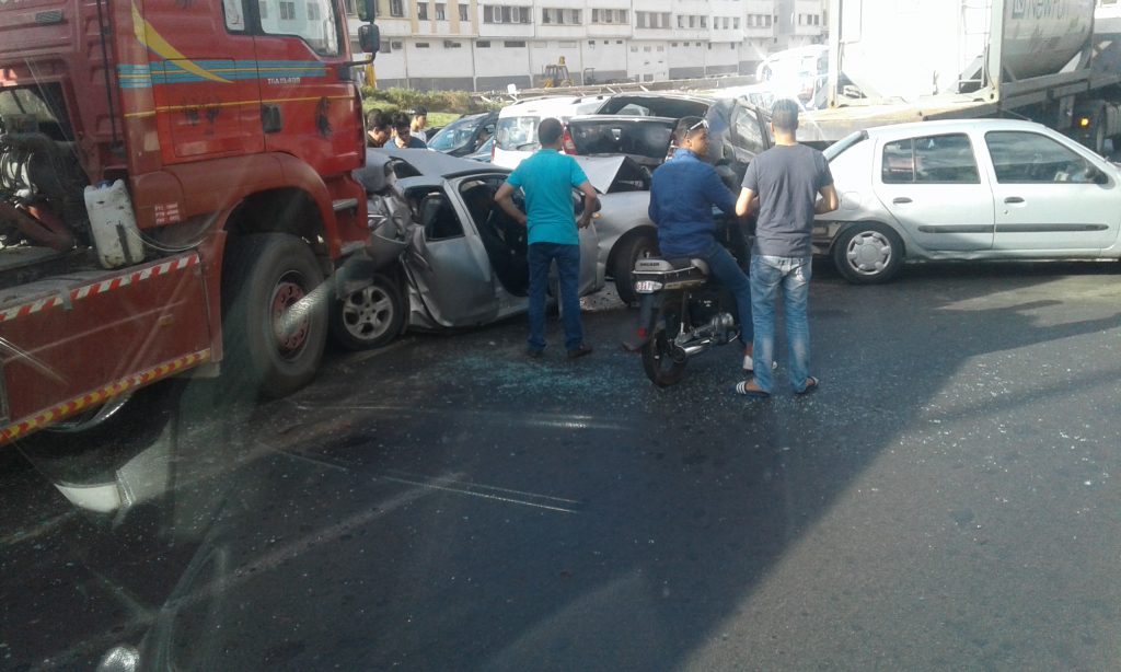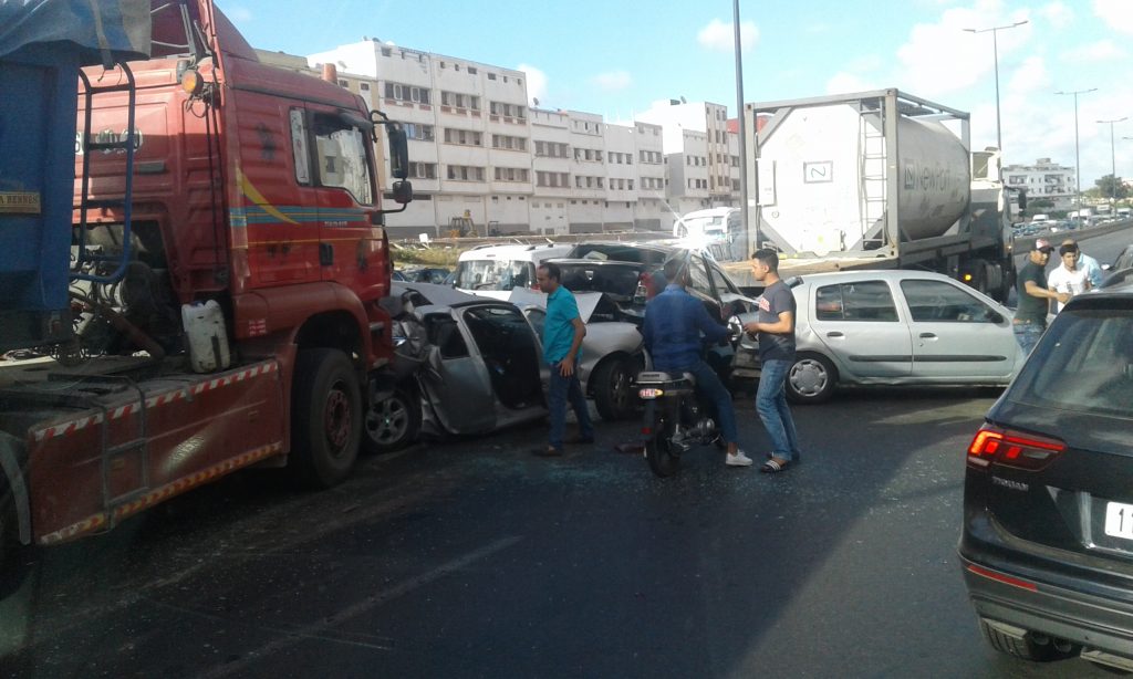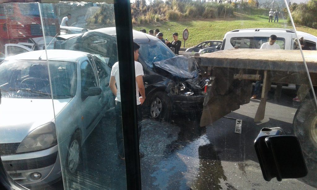 وقعت بالطريق السيار الرابط بين الدارالبيضاء و الرباط مساء هذا اليوم و بالضبط بمنطقة عين الشق حادثة سير خطيرة نجمت عن اصطدام قوي لشاحنة بثلاثة سيارات خفيفة و كان سببها السرعة ، و عدم الانتباه ومحاولة تجاوز خاطئة حسب شهود عيان بينما لم تسجل أي خسائر في الأرواح ..